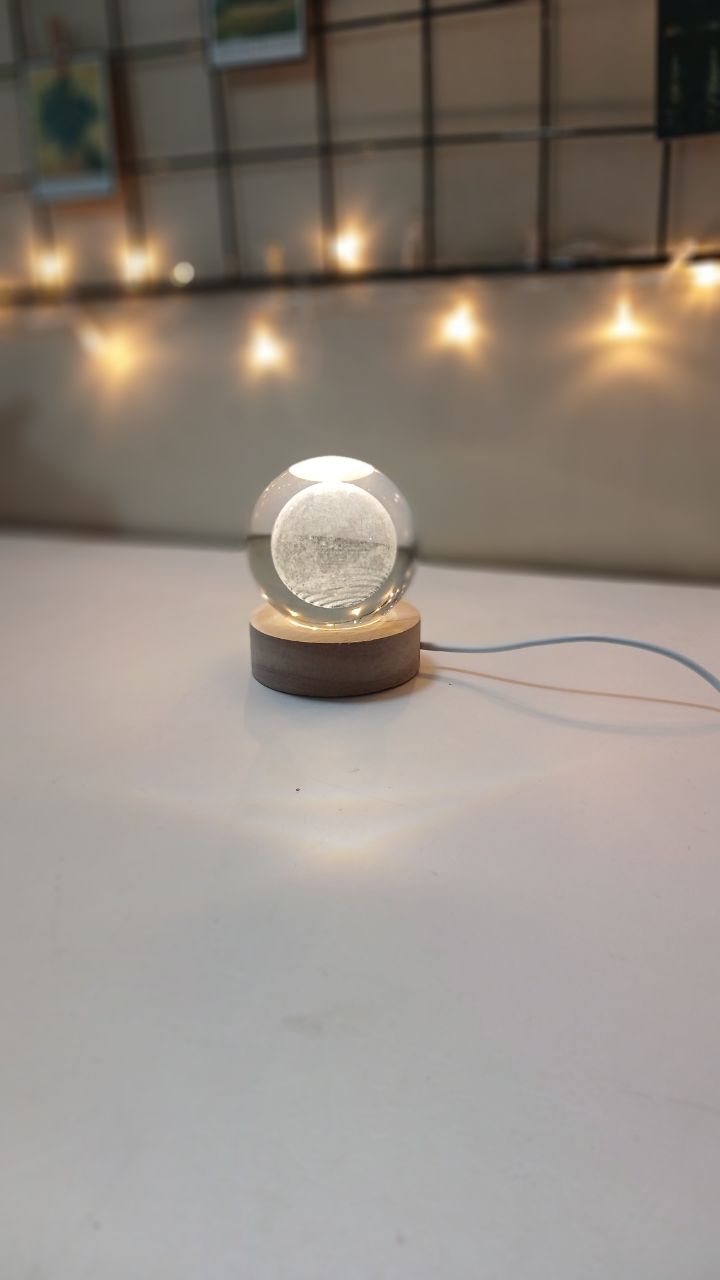گوی شبتاب شیشه ای نشکن پایه چوبی متصل به برق : قطر ۶ : ۲۸۰. قطر ۸ : 350