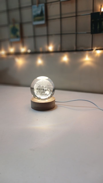 گوی شبتاب شیشه ای نشکن پایه چوبی متصل به برق