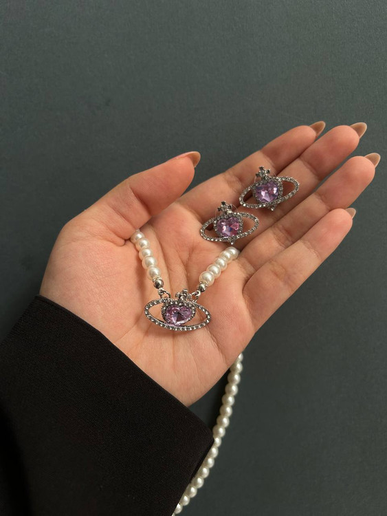 ترکیب مروارید و قلب بنفش یکی از قشنگترین ایتمها برای هدیه به کسی که دوستش داری🥹🎀